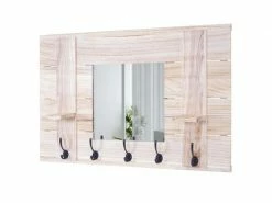 Garderobe murale HWC-C89 avec miroir, planche vestiaire, style shabby chic, vintage, 5 crochets 90x60cm ~ brun naturel
