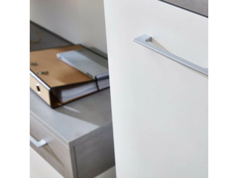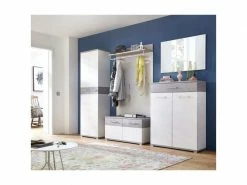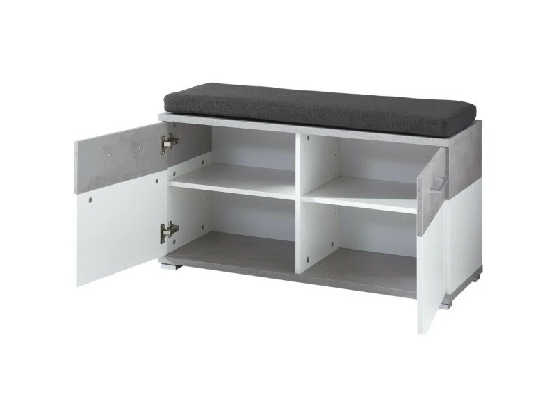 Que ce soit pour les petits ou les grands couloirs, cette armoire Ă chaussures moderne Topix de la marque Germania est toujours l’option idĂ©ale pour ranger vos chaussures. FabriquĂ© en agglomĂ©rĂ© laminĂ© dans une belle couleur de blanc et bĂ©ton, ce meuble Ă chaussures se compose de deux portes et d’une Ă©tagère rĂ©glable offrant un espace de rangement pour les articles essentiels du quotidien, ainsi que de deux poignĂ©es en barres de mĂ©tal et de pieds en plastique argentĂ©. Avec une hauteur de 50,4 cm, le range-chaussures offre Ă©galement la hauteur idĂ©ale pour une position assise confortable et sa partie infĂ©rieure peut supporter un poids allant jusqu’Ă 80 kg pendant une courte pĂ©riode. En outre, la surface revĂŞtue de rĂ©sine mĂ©laminĂ©e et les bords en ABS de haute qualitĂ© du banc Ă chaussures en font un meuble extrĂŞmement robuste. La large gamme de produits de la marque Germania offre un aspect moderne pour une grande variĂ©tĂ© de dĂ©cors, une grande flexibilitĂ© dans l’organisation de l’espace et beaucoup d’espace de rangement pour les vĂŞtements et les chaussures.