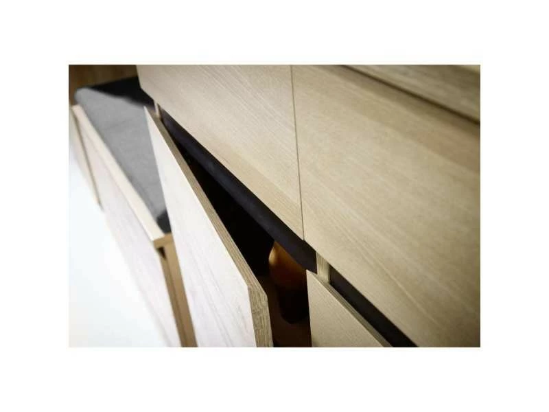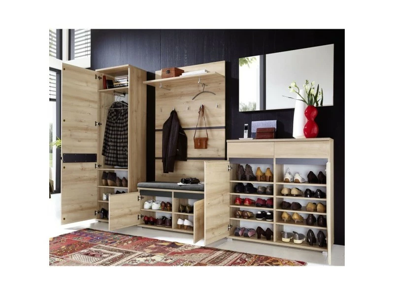 Caractéristiques techniques :Matière: Panneaux de particules Chants en ABS qualité (Acrylonitrile Butadiène Styrène) Finitions: Papier décorDimensions Longueur: 96 cm Profondeur : 40 cm Hauteur: 103 cm Fermeture douce des portes et tiroirs par simple pression 2 tiroirs et 2 portes Permet de ranger environ 20 paires de chaussures A monter soi-même Les plus produit :Teinte chaleureuse Excellent rapport qualité / prix Harmonisation parfaite avec l’ensemble de la collection LISSABON Qualité Allemande