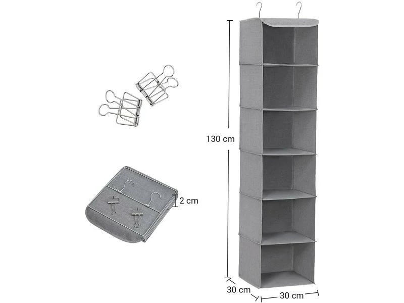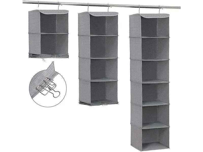 PrĂ©sentation produit: Armoire Ă©tagère en tissu rangement Ă suspendre 130 cm gris 12_0000932 Helloshop26 12_0000932