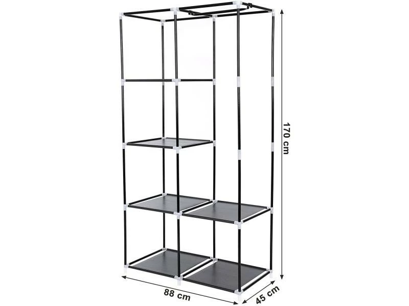 Présentation produit: Armoire de rangement vêtements penderie dressing toile porte manteau 170 cm 2 colonnes 12_0000194 Helloshop26 12_0000194