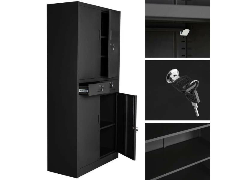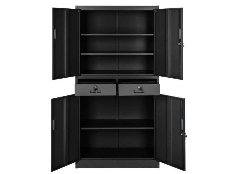 Présentation produit: Armoire métallique étagère meuble 2 compartiments + 2 tiroirs noir 08_0000377 Helloshop26 08_0000377