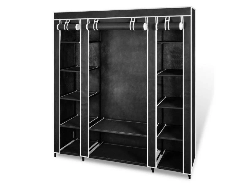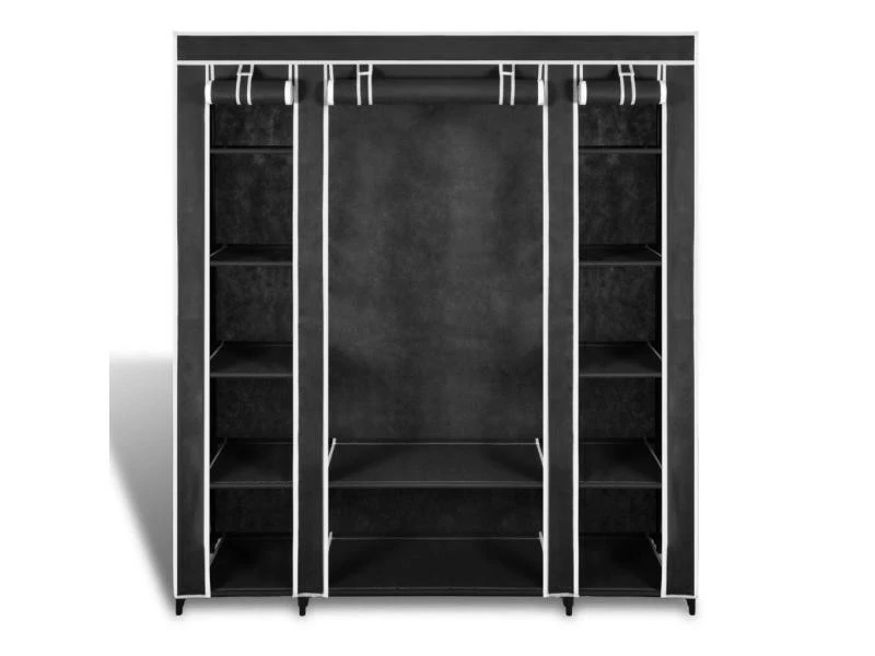 Présentation produit: Armoires penderie étagère tissu non-tissé noir hauteur 180 cm entrée chambre camping re camping 2002006/2 Helloshop26 2002006/2