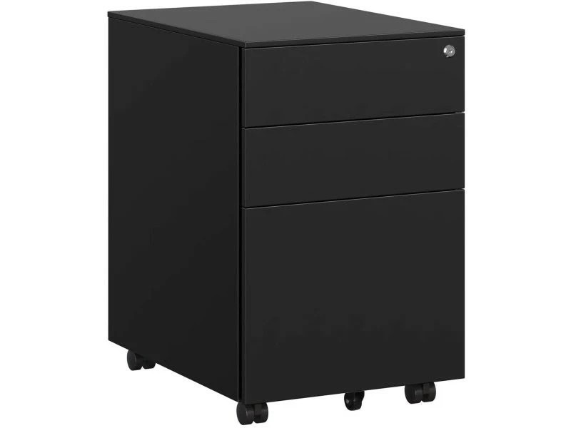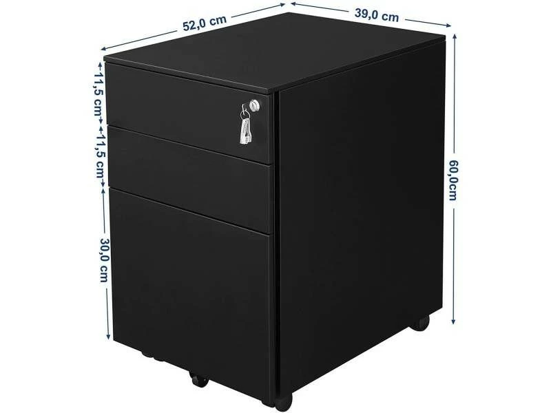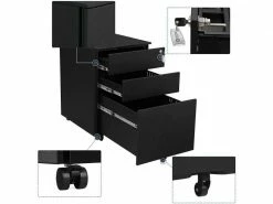 Présentation produit: Caisson de bureau à roulettes avec 3 tiroirs et classeur suspendu armoire de bureau noir 12_0000362 Helloshop26 12_0000362