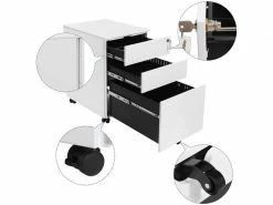 Présentation produit: Caisson de bureau à roulettes avec 3 tiroirs et classeur suspendu armoire de bureau verrouillable pour dossiers et documents corps d’armoire prémonté blanc 12_0000361 Helloshop26 12_0000361