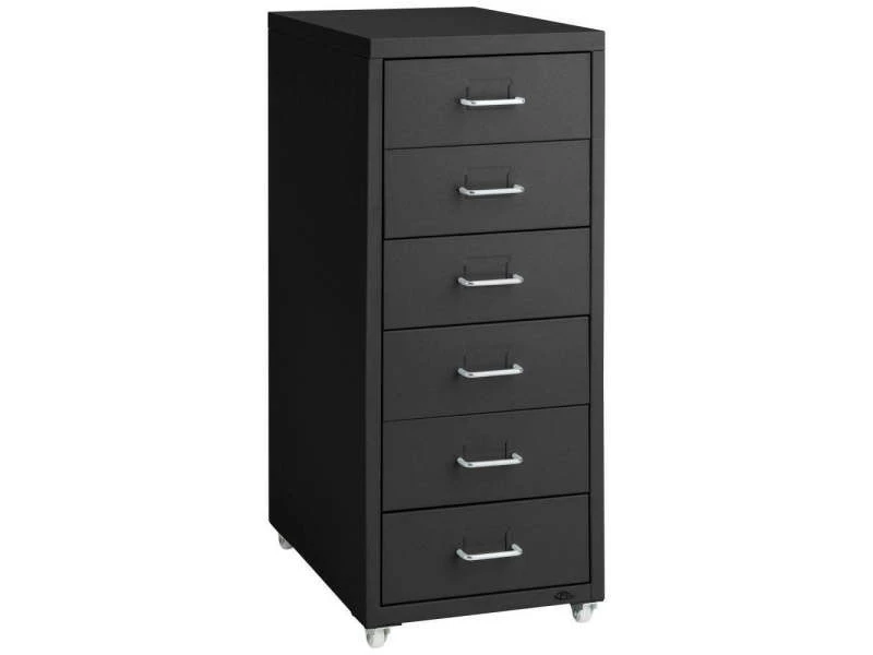 Présentation produit: Caisson de bureau 69 cm meuble en métal 6 tiroirs noir 08_0000395 Helloshop26 08_0000395