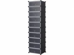 Présentation produit: Organisateur d’unité d’étagères de rangement pour chaussures modulaire 10 cubes avec portes plastique noir 19_0000349 Helloshop26 19_0000349