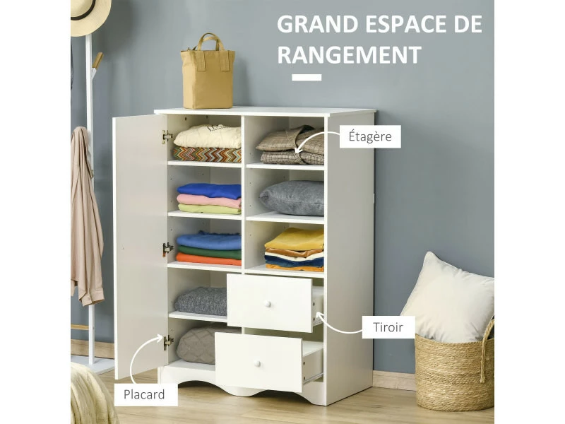 – Armoire meuble de rangement au design sobre et moderne coloris blanc