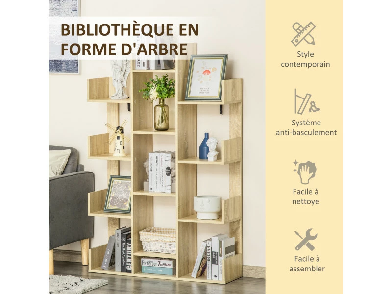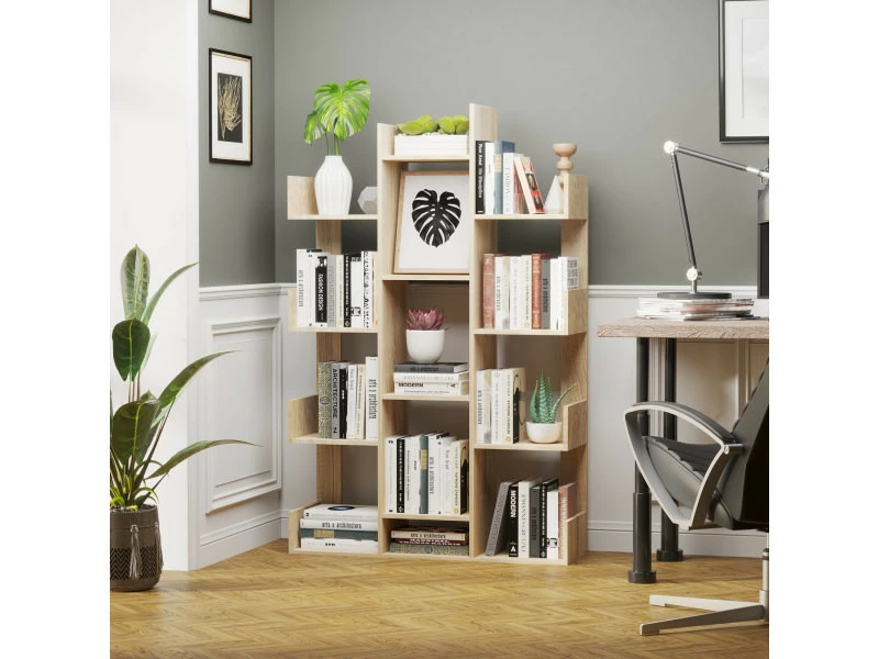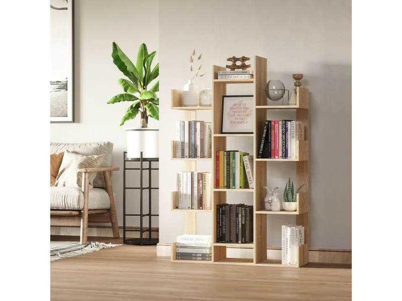 Cette magnifique bibliothèque étagère séparation style contemporain en forme d’arbre s’intègrera parfaitement à votre salon, chambre, bureau, etc… Avec ses nombreux espaces (total de 13 étagères !), ce meuble vous offrira un grand espace de rangement pour vos livres, CD, Blu-ray, décorations, etc… Son design mélant élégance et originalité sublimera votre intérieur.