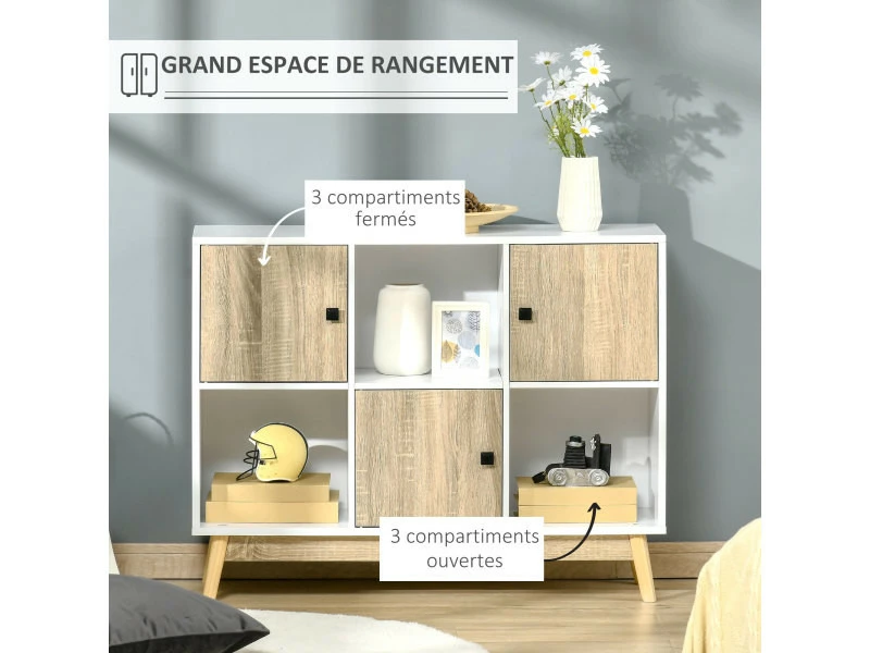 Ce superbe meuble de rangement design scandinave sublimera votre salon ou chambre. MĂ©lant avec Ă©lĂ©gance casiers et placards avec porte, ce meuble de rangement rajoutera une touche supplĂ©mentaire d’Ă©lĂ©gance Ă votre intĂ©rieur et vous offrira de nouveaux espaces pour ranger et mettre en valeur vos livres, accessoires, etc.