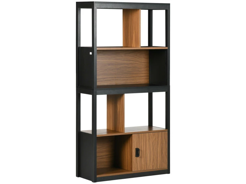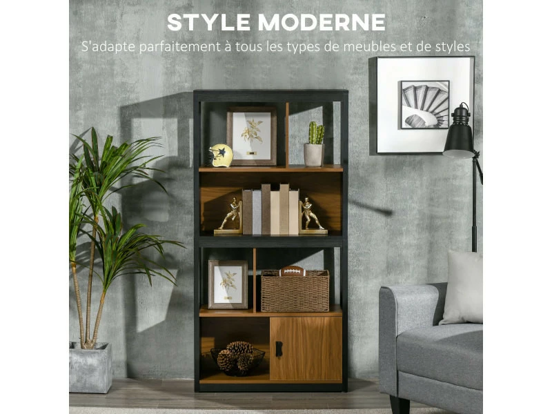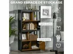 Cette bibliothèque étagère de rangement est idéale pour installation dans votre salon, chambre, bureau, etc. Équipée de 2 étagères, 2 niches, et d’un placard porte, ce meuble vous offrira des espaces de rangement variés. Son style industriel décorera parfaitement votre intérieur en lui ajoutant une touche type loft New-yorkais.