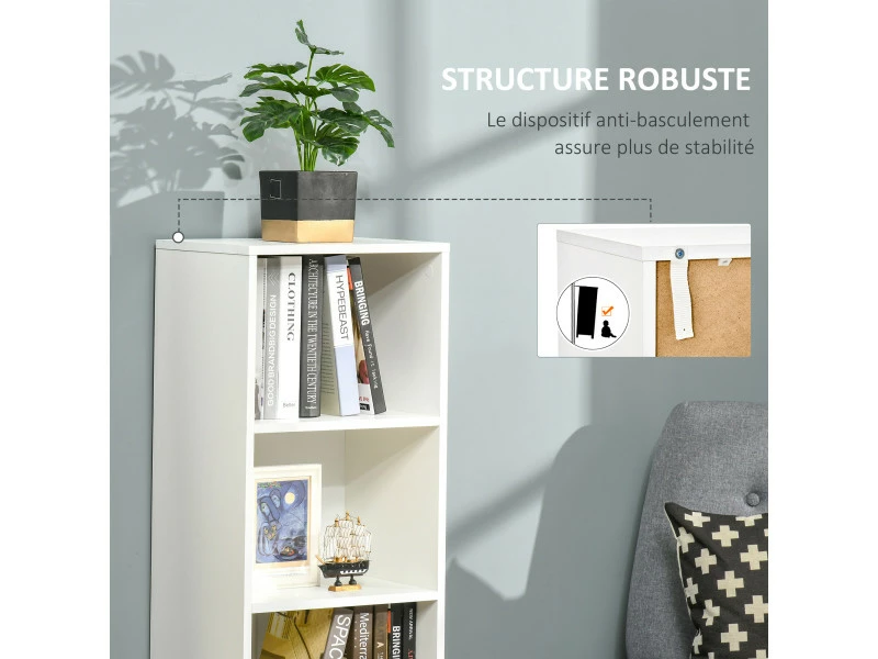 – 4 espaces de rangement (3 niches et placard porte) afin de vous permettre de ranger vos livres, CD, Blu-ray, décorations, etc.