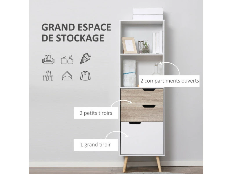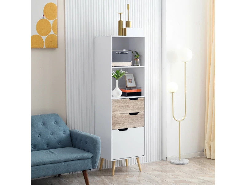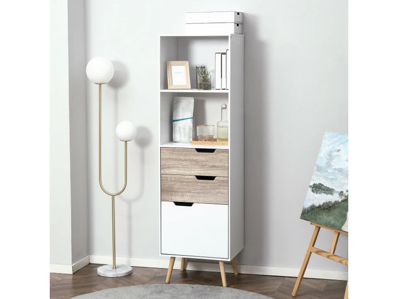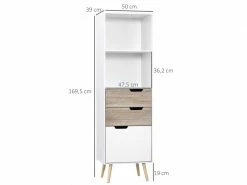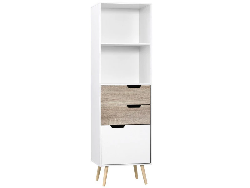 Vous avez besoin d’un espace de rangement pour vos collections de livres ? Choisissez cette bibliothèque de style scandinave, pour un rangement pratique tout en ajoutant une touche supplémentaire de design à votre intérieur. Les 5 espaces composés de 2 niches et 3 tiroirs coulissants faciliteront le rangement de vos livres, magazines, CD/DVD ou encore décorations.
