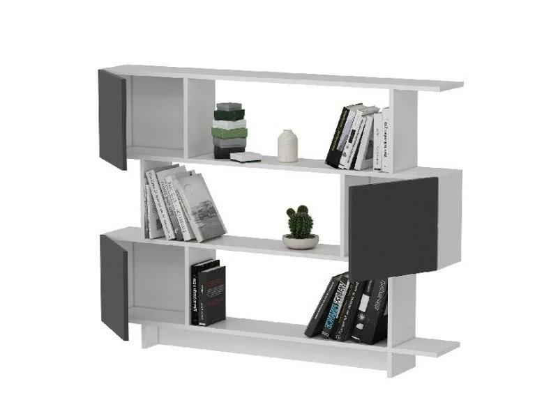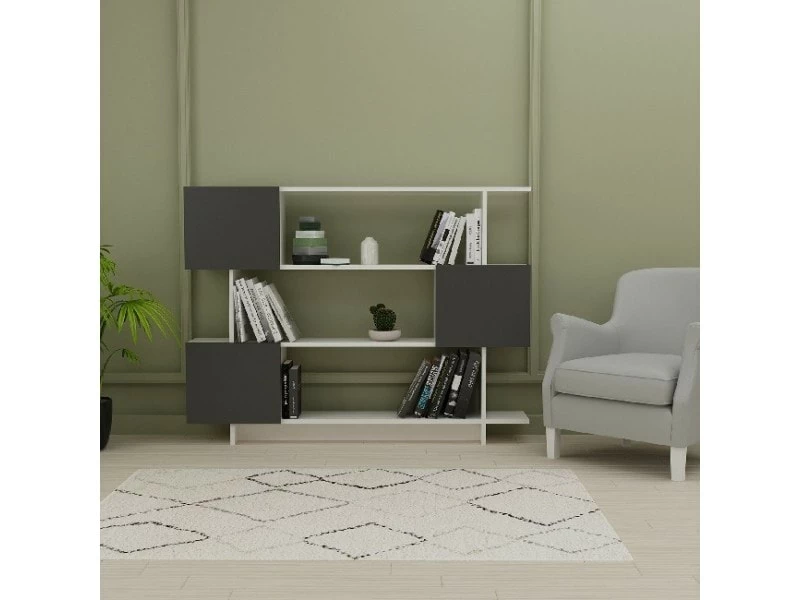 Cette bibliothèque moderne et fonctionnelle est la solution parfaite pour ranger vos livres dans l’ordre et meubler votre maison avec style. Grâce à sa conception, il est idéal pour le salon, la chambre à coucher de la maison et le bureau. Kit de montage inclus, facile à nettoyer et à assembler. Couleur: Blanc, Anthracite | Dimensions: 150×23,8×113,2 cm | Matériel: Panneau d’aggloméré mélaminé | Poids du produit: 29 kg | Poids pris en charge: Chaque étagère 10 Kg | Poids de l’imballage: 30,5 Kg | Nombres de boîtes: 1 | Dimensions de boîtes: 153,6×39,2×12,9 cm.
