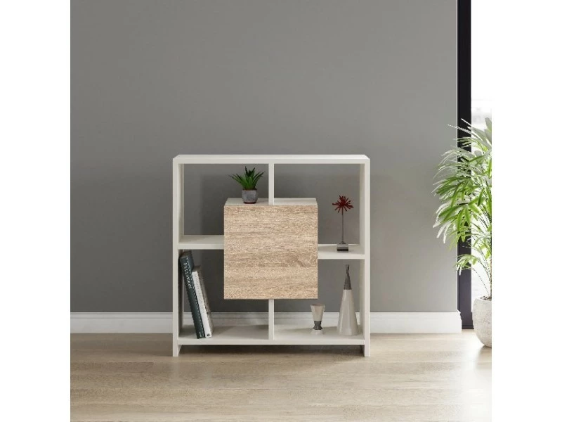 Cette bibliothèque moderne et fonctionnelle est la solution idéale pour ranger vos livres et meubler votre maison avec style. Grâce à son design, il est idéal pour la zone de séjour, la zone de sommeil de la maison et le bureau. Kit de montage facile à nettoyer et à assembler inclus Couleur: Blanc, Sonoma | Dimensions: 80x30x80 cm | Matériel: Panneaux de particules en mélamine certifiés FSC | Poids du produit: 19,5 kg | Poids pris en charge: 30 Kg | Poids de l’imballage: 22 Kg | Nombres de boîtes: 1 | Dimensions de boîtes: W89,5xD48,5xH17 cm.