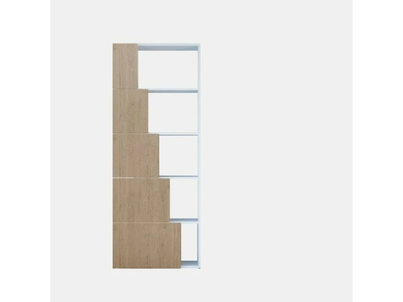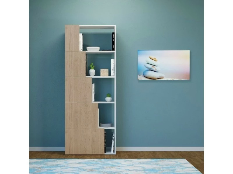 Cette bibliothèque moderne et fonctionnelle est la solution parfaite pour ranger vos livres et meubler votre maison avec style. Grâce à sa conception, il est idéal pour le salon, la chambre à coucher de la maison et le bureau. Kit de montage inclus, facile à nettoyer et à assembler.. Couleur: Blanc, Bois | Dimensions: 65x22x166 cm | Matériel: Panneau de mélamine | Poids du produit: 28,25 kg | Poids pris en charge: 5 Kg | Poids de l’imballage: 30,7 Kg | Nombres de boîtes: 1 | Dimensions de boîtes: 175,5×32,5×13 cm – 57×43,5×7,5.