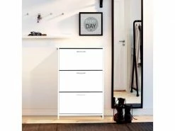 Ce porte-chaussures moderne et fonctionnel est la solution parfaite pour garder tous les types de chaussures en ordre. Grâce à sa conception, il est idéal pour les espaces de vie et de repos. Kit de montage inclus, facile à nettoyer et à assembler.. Couleur: Blanc | Dimensions: 72×25,5×112 cm | Matériel: Panneau d’aggloméré mélaminé, Métal, Plastique | Poids du produit: 26,25 kg | Poids pris en charge: 25,00 Kg | Poids de l’imballage: 27 Kg | Nombres de boîtes: 2 | Dimensions de boîtes: 73,6x25x18 cm – 34x28x8 cm.