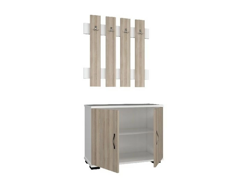 Cette armoire d’entrée moderne et fonctionnelle est la solution idéale pour garder les vêtements et divers objets en ordre. Grâce à sa conception, il est idéal pour l’espace de vie. Kit de montage facile à nettoyer et à assembler inclus.. Couleur: Blanc, Cordoue | Dimensions: Armoire 72x35x57 cm, Cintres 72x4x72 cm | Matériel: Panneau d’aggloméré mélaminé, Métal, Plastique | Poids du produit: 22,85 kg | Poids pris en charge: 38,00 Kg | Poids de l’imballage: 23 Kg | Nombres de boîtes: 1 | Dimensions de boîtes: 35,6×76,6×18,3 cm.