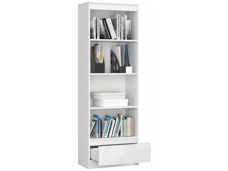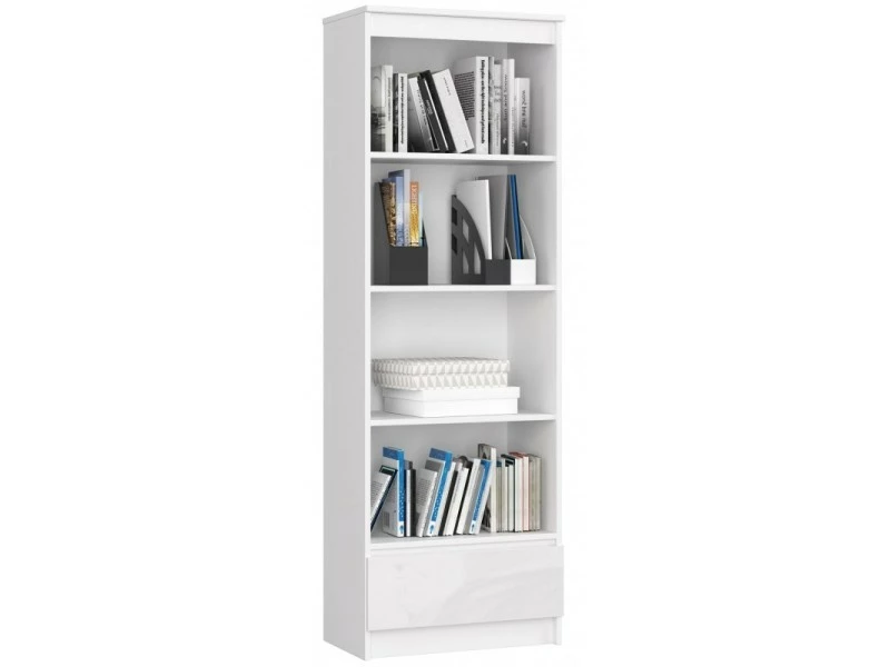 Cette bibliothèque Ă©lĂ©gante renouvellera l’intĂ©rieur de n’importe quel bureau ou pièce. Le design est minimaliste mais robuste et durable. Elle convient pour le rangement de livres, de classeurs ou d’accessoires de bureau et de cadres photo. Les dimensions ergonomiques et le design moderne permettent de meubler librement la pièce., POINTS FORTS: Style moderne, 4 tablettes, 1 tiroir, Design Ă©lĂ©gant et pratique, Faces sans poignĂ©e, Finition des façades : brillant, CARACTÉRISTIQUES TECHNIQUES: Hauteur : 180cm, Largeur : 60cm, Profondeur : 35 cm, MatĂ©riau : panneau laminĂ©, Ă€ monter soi-mĂŞme, Photos des articles le plus fidèle possible, mais restant non contractuelles, les nuances de couleur et le rendu des matières prĂ©sentĂ©s Ă l’Ă©cran pouvant ĂŞtre diffĂ©rents de la rĂ©alitĂ©