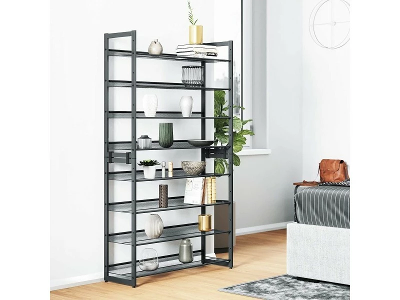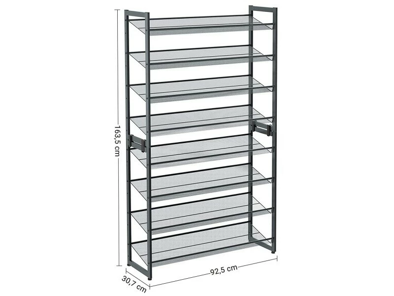 Le meuble Ă chaussures industriel est un meuble très pratique qui sera très utile dans le couloir. Il dispose de 8 Ă©tagères Ă chaussures qui peuvent contenir jusqu’Ă 40 paires, selon la taille. Le meuble est fabriquĂ© en panneau de particules qui est un matĂ©riau très durable, rĂ©sistant Ă l’humiditĂ© et aux dĂ©formations. Les tablettes peuvent ĂŞtre montĂ©es de deux façons : droit ou Ă un angle. Elles sont faites en filet, ce qui les rend très fonctionnelles. La charge maximale sur la tablette est de 10 kg. Le set comprend 4 raccords en matière plastique., POINTS FORTS: Style industriel, 8x tablette, Finition : cadre et tablettes en coloris gris chaud, Meuble pratique de forme simple, Haute qualitĂ© de fabrication, CARACTÉRISTIQUES TECHNIQUES: Largeur 92.5 cm, Profondeur 30.7 cm, Hauteur 163.5 cm, MatĂ©riau : fer, Ă€ monter soi-mĂŞme, Photos des articles les plus fidèles possible, mais restant non contractuelles, les nuances de couleur et le rendu des matières prĂ©sentĂ©s Ă l’Ă©cran pouvant ĂŞtre diffĂ©rents de la rĂ©alitĂ©, Veuillez sĂ©curiser le meuble contre le basculement avec l’accesoire de montage fourni