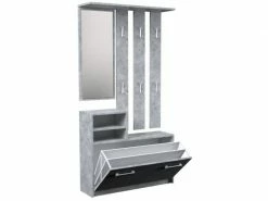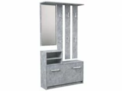 Extrêmement pratique, le meuble d’entrée VITTORIA dispose de six crochets pour y suspendre vos manteaux, d’un grand miroir, deux niches pour ranger les petits objets et une étagère. Enfin, le meuble bénéficie d’un espace rangement pour vos chaussures qui pourra accueillir jusqu’à 9 paires. Avec sa couleur sobre et design moderne, il s’adaptera dans n’importe quel style. Sa structure en panneaux de particules mélaminés se caractérisent par une grande durabilité et une finition tendance. POINTS FORTS: 6 crochets, Multi-rangements : 2 niches, étagère, Grand miroir, Rangement pour 9 paires de chaussures, Hauteur de crochets réglable, Moderne et fonctionnel, CARACTÉRISTIQUES TECHNIQUES: Dimensions: 180x85x24 cm Structure en panneaux de particules mélaminés 16mm, Poignées de haute qualité, Bords en PVC, Fabriqué en Europe, Assemblage aisé, Fixations murales non fournies!, Photos des articles le plus fidèle possible, mais restant non contractuelles, les nuances de couleur et le rendu des matières présentés à l’écran pouvant être différents de la réalité