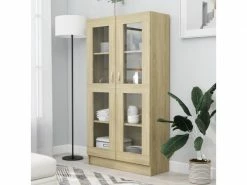 Icaverne – Bibliothèques Armoire Ă vitrine ChĂŞne sonoma 82,5×30,5×150 cm AgglomĂ©rĂ© «Â