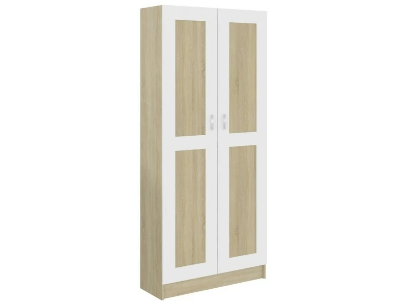 Icaverne – Bibliothèques collection Bibliothèque Blanc et chĂŞne sonoma 82,5×30,5×185,5 cm AgglomĂ©rĂ© «Â