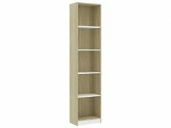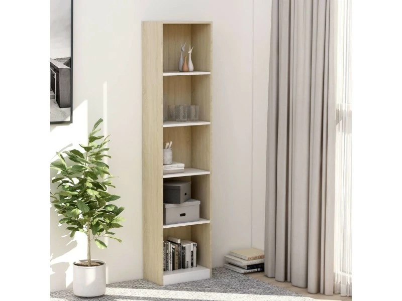 Icaverne – Bibliothèques ensemble Bibliothèque Ă 5 niveaux Blanc et chĂŞne sonoma 40x24x175 cm AgglomĂ©rĂ© «Â