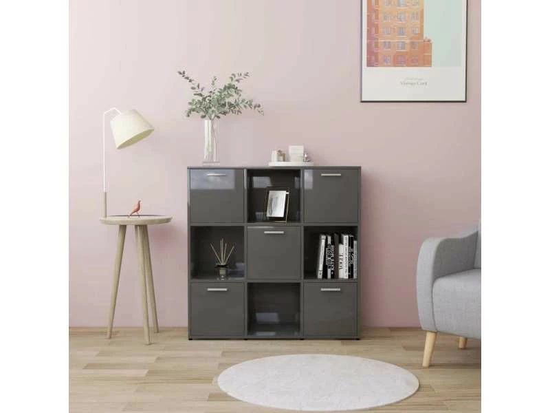 Icaverne – Bibliothèques ensemble Bibliothèque Gris brillant 90x30x90 cm AgglomĂ©rĂ© «Â