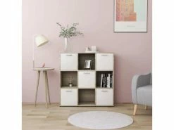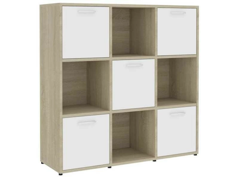 Icaverne – Bibliothèques famille Bibliothèque Blanc et chĂŞne sonoma 90x30x90 cm AgglomĂ©rĂ© «Â