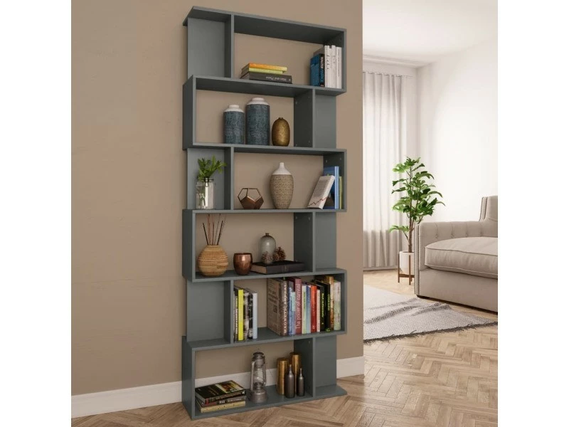 Icaverne – Bibliothèques famille Bibliothèque/SĂ©parateur de pièce Gris 80x24x192 cm AgglomĂ©rĂ©