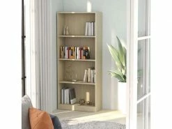 Icaverne – Bibliothèques reference Bibliothèque Ă 4 niveaux ChĂŞne sonoma 60x24x142 cm AgglomĂ©rĂ© «Â