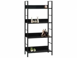 Icaverne – Bibliothèques serie Bibliothèque Ă 4 niveaux Noir 60×27,6×124,5 cm AgglomĂ©rĂ©