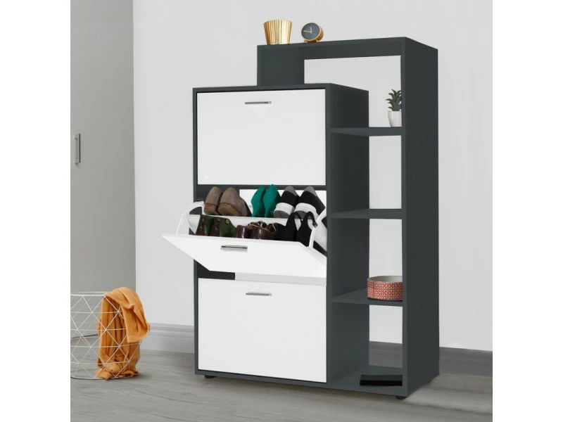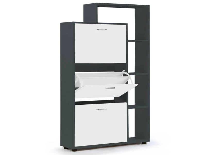 – Meuble à chaussures gris 3 portes blanches avec étagère