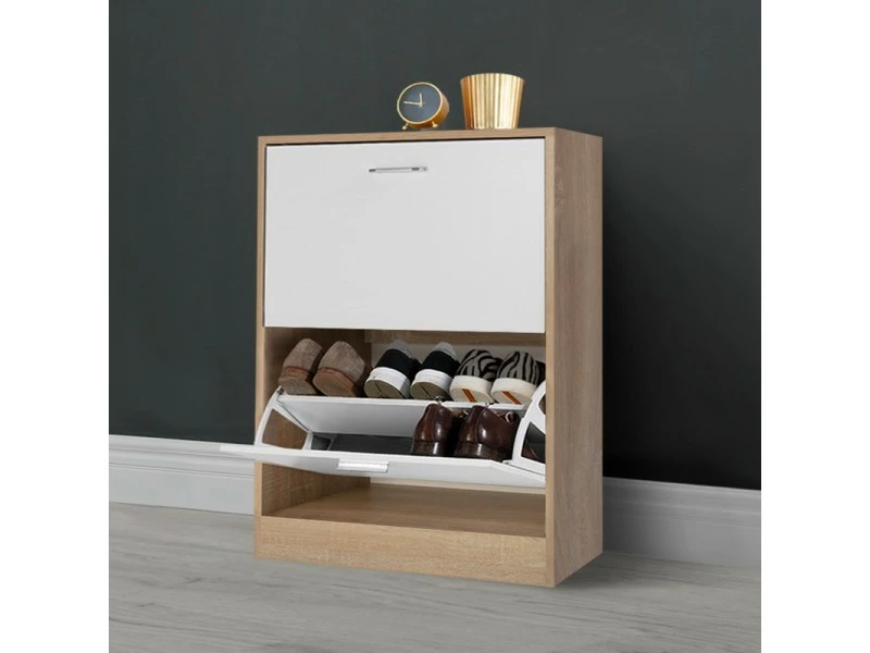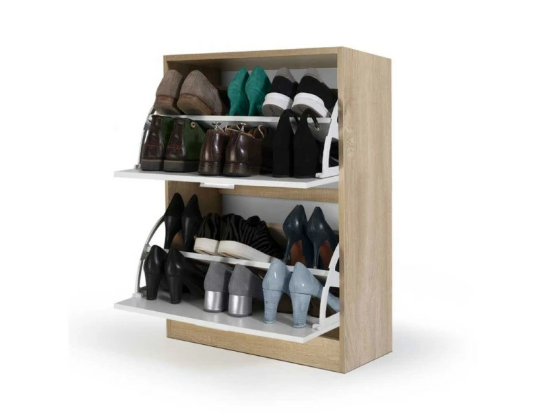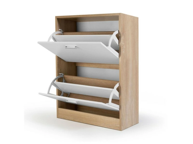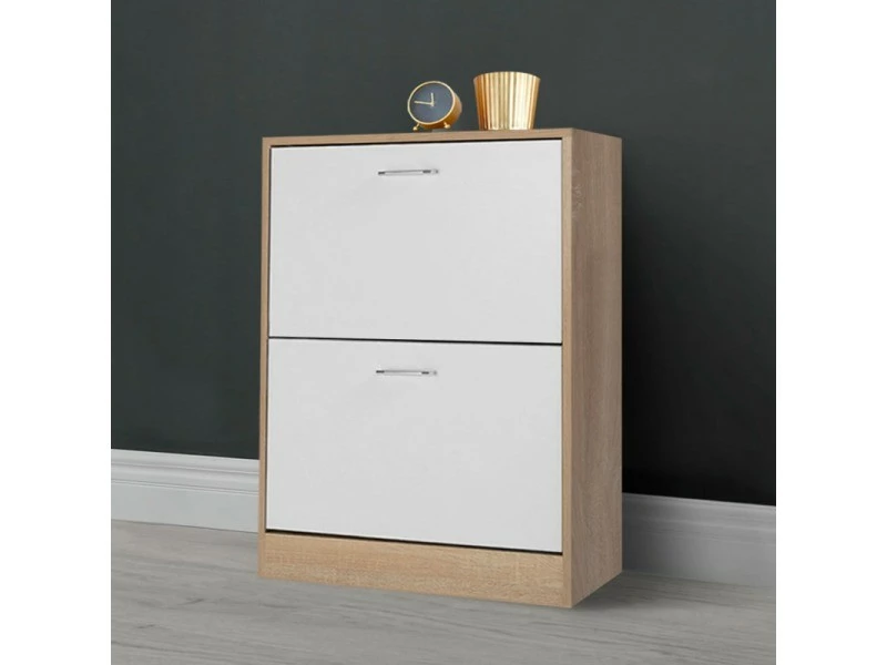 – Meuble à chaussures imitation hêtre 2 portes blanches