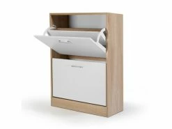 Optimisez l’espace dans votre maison, gagnez du temps grâce à notre meuble à chaussures imitation hêtre et ses 2 portes blanches.