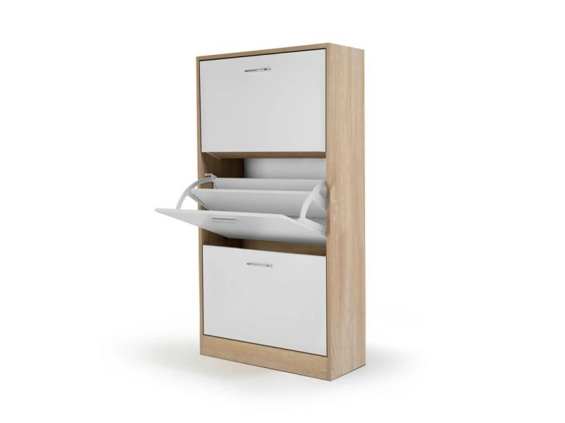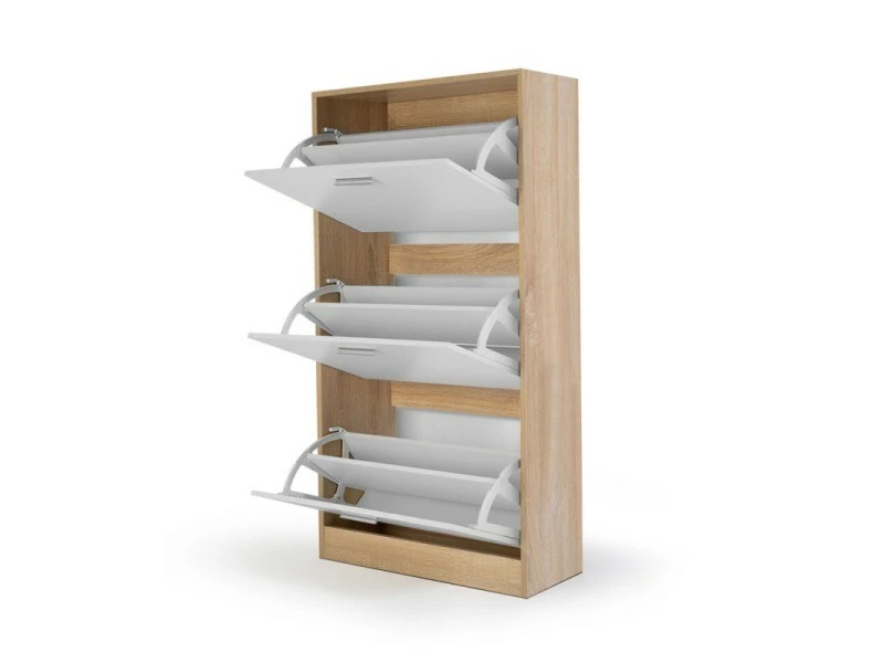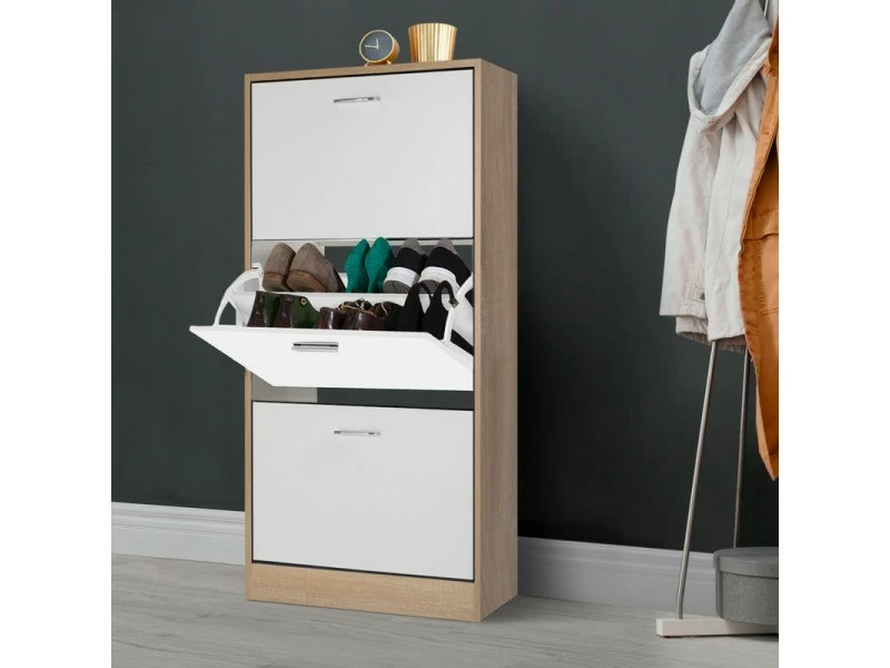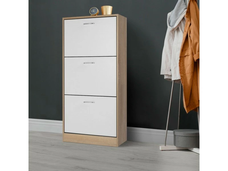 – Meuble à chaussures imitation hêtre 3 portes blanches