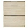 – Meuble à chaussures imitation hêtre 3 portes blanches avec étagère