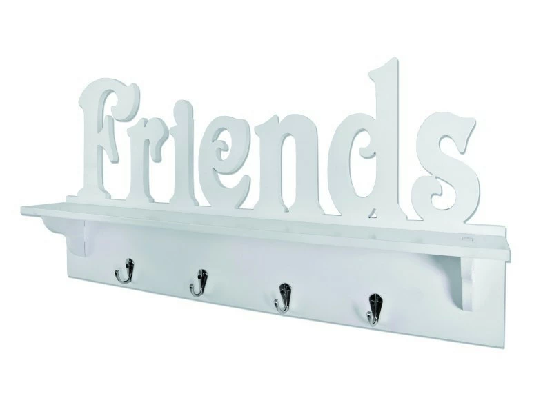 Inedit NUANCEMEUBLE garderobe murale Kigali blanc-chromé L60 x P9 x H30 cm « en MDF laqué blanc, écriture « »Friends » », 4 crochets chromé, monté » 1.7kg