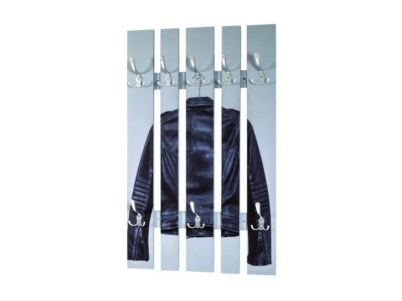 Inedit NUANCEMEUBLE garderobe murale Riyad gris-noir-optique inox L65 x P9 x H100 cm MDF avec impression par Ultra Violet (motif: Blouson cuir), 8 crochets en optique inox 6.3kg