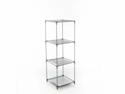 Montée en quelques instants, cette étagère 3 cases s’installe partout. Elle peut être utilisée seule de la salle de bain au garage ou avec des boites de rangement (vendues séparément) et devient ainsi meuble à tiroirs. Charge maximale par case : 2 kg. Tubes en métal, étagères en non tissé, embouts d’angles en plastique. A monter soi-même. Largeur : 34 cm env Profondeur : 34 cm env Hauteur : 104 cm env. Coloris des étagères : gris.