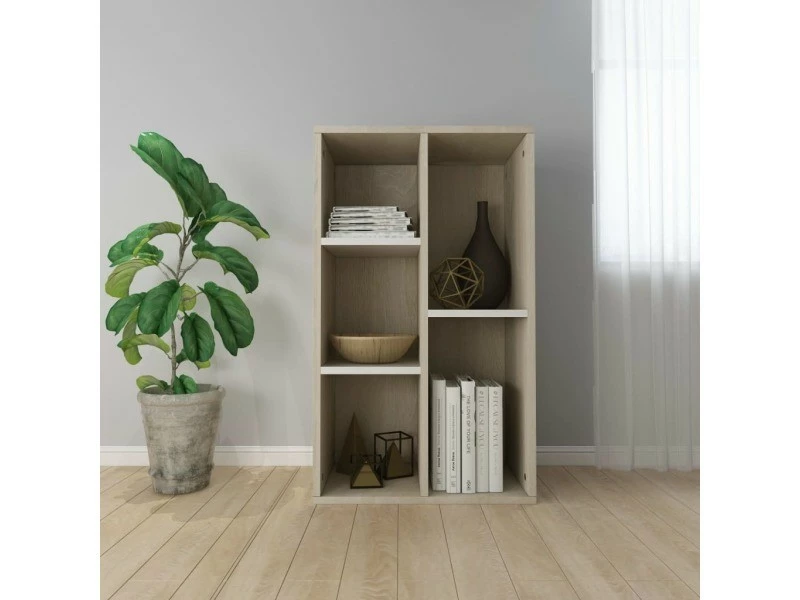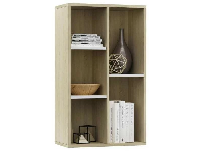 ICAVERNE Joli Étagères edition Jérusalem Bibliothèque/Buffet Blanc et chêne sonoma 45x25x80 cm Aggloméré Dotée d’un design élégant et classique, cette bibliothèque ajoutera une touche décorative et pratique à votre décoration. Le meuble est constitué de panneaux de particules, ce qui lui assure solidité, durabilité et longévité. Conçue avec 5 compartiments, la bibliothèque offre un grand espace de stockage pour garder vos magazines, livres, DVD et appareils multimédia bien organisés et à portée de main. En outre, en tant qu’étagère polyvalente, le porte-livre peut également être placé horizontalement comme buffet, ce qui en fait le choix idéal pour votre espace de vie. L’étagère à livres est facile à nettoyer avec un chiffon humide. Cette bibliothèque est facile à assembler avec des matériaux de montage inclus. Couleur : Blanc et chêne sonoma Matériau : aggloméré Dimensions : 45 x 25 x 80 cm (l x P x H) Avec 5 compartiments Peut être placé horizontalement comme un buffet Matériaux de montage inclus