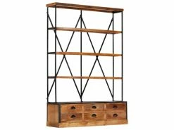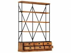 ICAVERNE Joli Étagères selection Riga Bibliothèque Ă 4 Ă©tagères avec 6 tiroirs 122x36x181 cm Manguier Ă€ la fois Ă©lĂ©gante et sophistiquĂ©e, cette bibliothèque Ă 4 Ă©tagères avec 6 tiroirs rappelle le charme vintage et le style industriel avec son cadre en bois de manguier massif et en acier enduit de poudre. Cette bibliothèque constitue une solution idĂ©ale pour stocker et afficher votre collection de livres, vos magazines, vos documents ainsi que des objets de dĂ©coration tels que des cadres photo et des objets de collection. La bibliothèque a un cadre en acier robuste enduit de poudre qui lui donne un look industriel. FabriquĂ©s en bois de manguier massif, les Ă©tagères et les tiroirs sont stables, durables et esthĂ©tiques et dĂ©gagent un style rĂ©tro spectaculaire. Chaque Ă©tape du processus est rĂ©alisĂ©e avec le plus grand soin, que ce soit le polissage, la peinture ou le laquage. L’artisanat et les beaux grains de bois font de chaque meuble un objet unique et lĂ©gèrement diffĂ©rent l’un de l’autre. Le buffet est facile Ă assembler. Remarque importante : les couleurs varient d’une pièce Ă l’autre, ce qui rend chacune de nos bibliothèques unique. La livraison est alĂ©atoire. MatĂ©riau : bois de manguier massif + cadre en acier enduit de poudre Dimensions : 122 x 36 x 181 cm (l x P x H) Surface polie, peinte et laquĂ©e Avec 6 tiroirs et 4 Ă©tagères