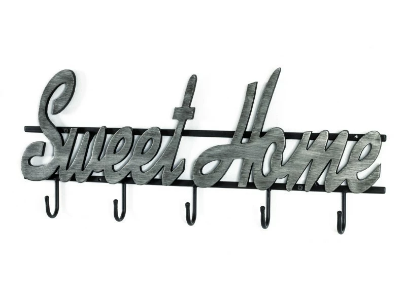 Joli NUANCEMEUBLE garderobe murale Kaboul noir-argenté L60 x P4 x H24 cm cadre en métal laqué noir, écriture en MDF laqué argent, avec 5 crochets 1kg