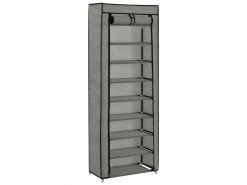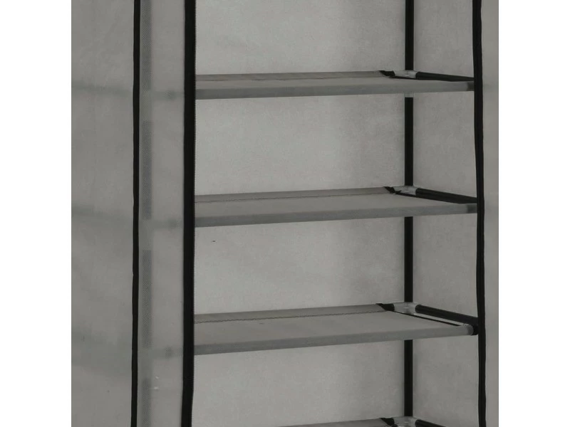 ICAVERNE Joli Rangements pour armoires à vêtements selection Nouakchott Armoire à chaussures avec housse Gris 57x29x162 cm Tissu Cette armoire à chaussures, avec un design à 8 niveaux, pourrait parfaitement accueillir toute une collection de chaussures pour vous. Vous ne devez plus être ennuyé par le problème des chaussures en désordre dans votre maison. Grâce au design à 8 niveaux, cette armoire à chaussures peut contenir 20 paires de chaussures, gardant ainsi toutes vos chaussures bien rangées en un seul endroit. La housse non tissée avec fermetures à glissière peut garder vos chaussures hors de vue, empêchant vos chaussures de la poussière en même temps. L’armoire à chaussures est légère, donc facile à déplacer. Couleur : gris Dimensions totales : 57 x 29 x 162 cm (L x l x H) Matériau : tubes enduits de poudre et tissu non-tissé AVERTISSEMENT : afin d’éviter qu’il ne bascule, ce produit doit être utilisé avec le dispositif de fixation murale fourni Matériel: Polyester: 100%