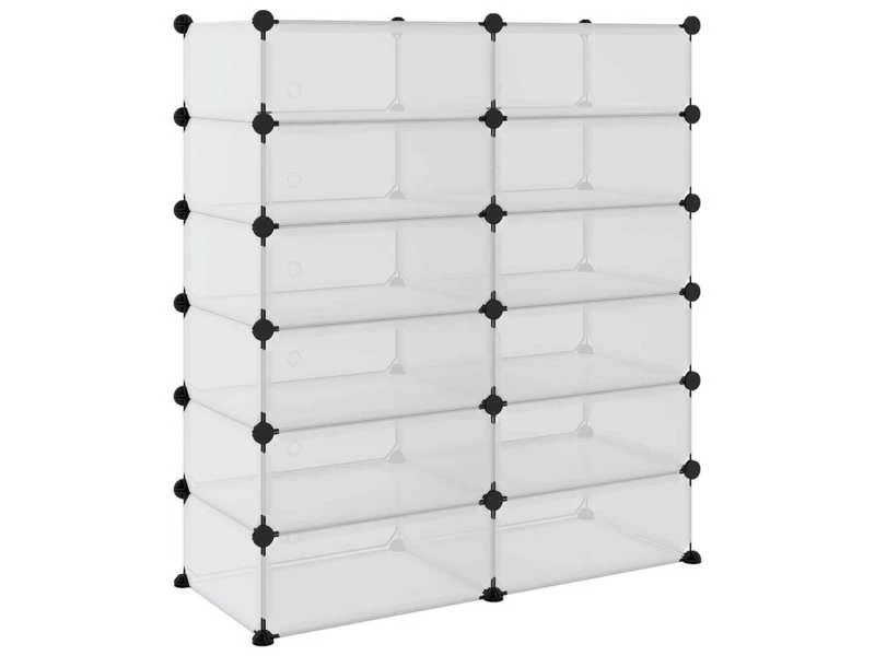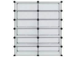 Cette étagère à chaussures offre une excellente solution de rangement pour votre collection de chaussures préférées et autres accessoires. Matériau pratique : le meuble à chaussures est fabriqué à partir de panneaux en plastique PP, qui sont imperméables et nécessitent peu d’entretien.Structure solide et stable : les cadres en acier garantissent la solidité et la stabilité.Design convivial : l’armoire à chaussures peut être assemblée facilement avec le marteau en bois inclus. Lorsqu’elle n’est pas utilisée, il est facile de séparer les panneaux et de les empiler pour économiser de l’espace.Grand espace de rangement : l’espace de rangement généreux de l’unité à chaussures facilite l’organisation des objets.Applications étendues : avec un grand espace de rangement et un design simple, l’étagère de rangement est une excellente solution de rangement pour votre maison, dortoir et bureau. Remarque :La capacité de charge maximale de chaque cube est de 10 kg.