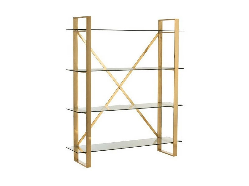 Cette superbe bibliothèque est parfaite pour embellir votre intérieur avec élégance et originalité. Sa structure est faite en acier inoxydable doré puis équipée de 4 plateaux en verre trempé.