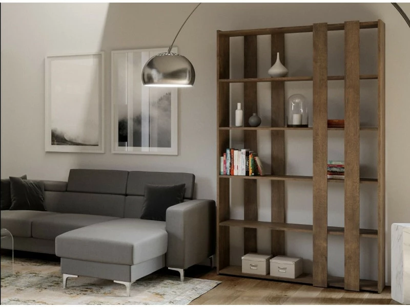 Cette jolie bibliothèque bois noyer sur 5 niveaux d’une longueur de 120 cm et d’une hauteur de 204 cm embellira votre intérieur avec charme et simplicité.