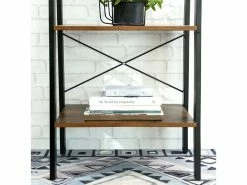 La bibliothèque se caractérise par sa polyvalence et sa fonctionnalité. Elle comporte 3 tablettes en panneau de particules. La construction est en métal, ce qui garantit la stabilité du meuble. La distance entre les tablettes est de 34 cm. La charge maximale par tablette est de 5 kg, POINTS FORTS: Style rustique, 3x tablette, Finition : tablettes en coloris marron rustique, cadre en coloris noir, Construction stable, Design fonctionnel, CARACTÉRISTIQUES TECHNIQUES: Profondeur 34 cm, Largeur 56 cm, Hauteur 137.5 cm, Matériau : panneau de particules, métal, À monter soi-même, Photos des articles les plus fidèles possible, mais restant non contractuelles, les nuances de couleur et le rendu des matières présentés à l’écran pouvant être différents de la réalité