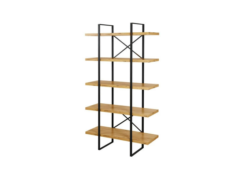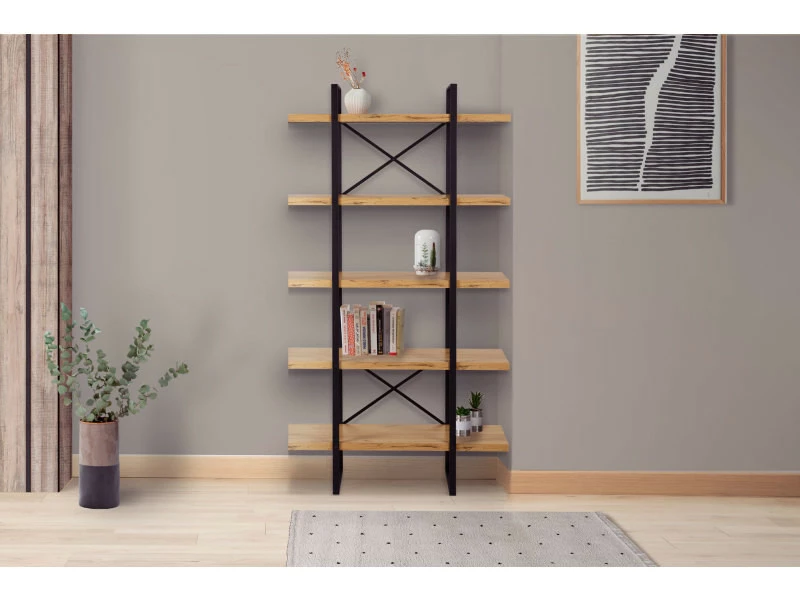 Etagère 5 tablettes Structure en tube métal laqué epoxy Tablette en panneaux alvéolaire Finition peinture laqué mate Coloris chêne grisé